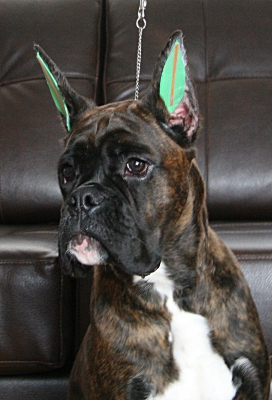 Finn will be starting his show career in a few months...I'm looking forward to getting him in the ring. I think this plain dark brindle boy is going to turn some heads!
